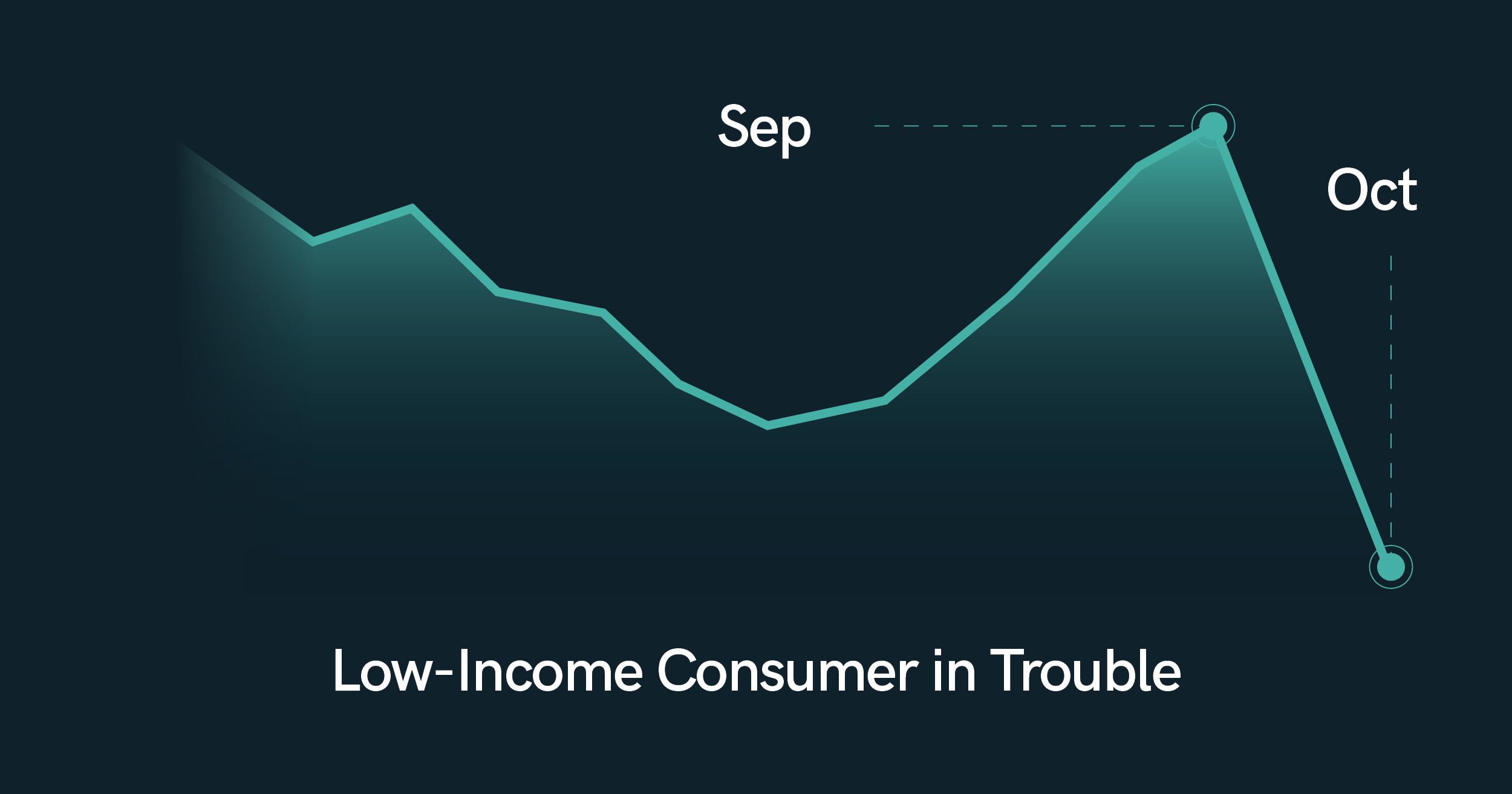 Today, Goldman Sachs downgraded DLTR from Buy to Sell due to concerns that the low-income consumer is showing material weakness. HundredX’s data shows that the purchase intentions of low-income households, defined as those with incomes between $25,000 and $40,000, declined noticeably in October, matching the annual low seen in April. Using Daloopa’s MCP, Dollar General (DG) was identified as the most exposed among the dollar stores, much more exposed than DLTR. FIVE screened as the least exposed and possibly a good pair trade against DG.