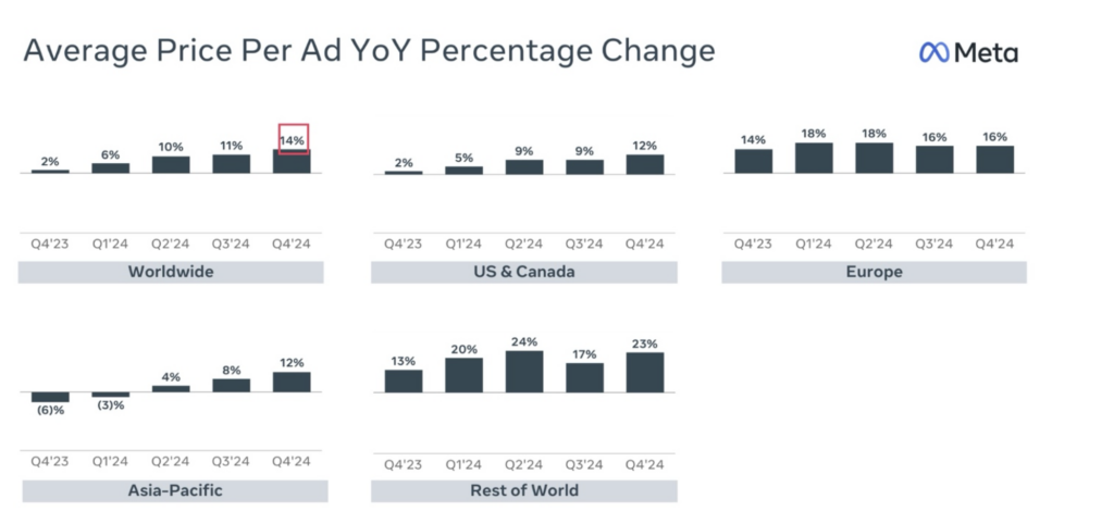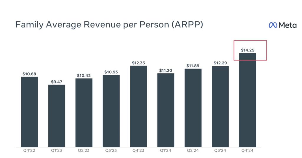 The upside came from pricing as the average price per ad increased 14% year over year. As seen in the chart above, growth was seen in all geographies. Ad impression growth continued to decelerate to 6% year over year from 7% last quarter. All in, ARPP increased to a new all-time high of $14.25, as seen in the chart below.