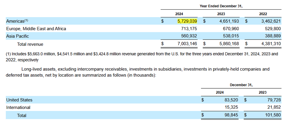 The concentration of Canada and Mexico based revenue in North America revenue is significantly lower here, captured in the footnote below. ANET does specially call out tariffs as a risk, and provides history of the risk in their 10-Q.