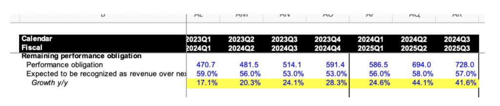 While overall growth has decelerated for MDB, their Remaining Performance Obligations has shown a strong uptick the last two quarters, accelerating to the 40% year over year mark from mid to high 20%s before.